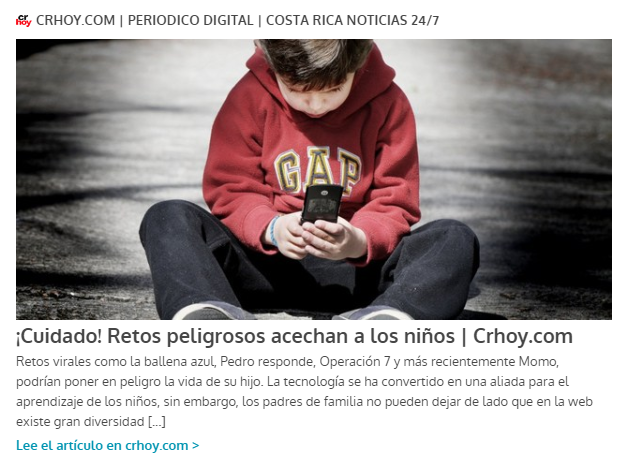 “Ahora es muy común que desde corta edad se tengan celulares y tabletas con Internet, incluso, que se sepa usar computadoras, por lo que como padres de familia tenemos que supervisar lo que ellos ven en los diferentes dispositivos, no solo por estos juegos nocivos, sino por otro tipo de contenido no apto para personas menores de edad que se pueden encontrar en la red”, dijo Rocío Solís, presidenta de la Comisión Costarricense de Cooperación con la UNESCO.